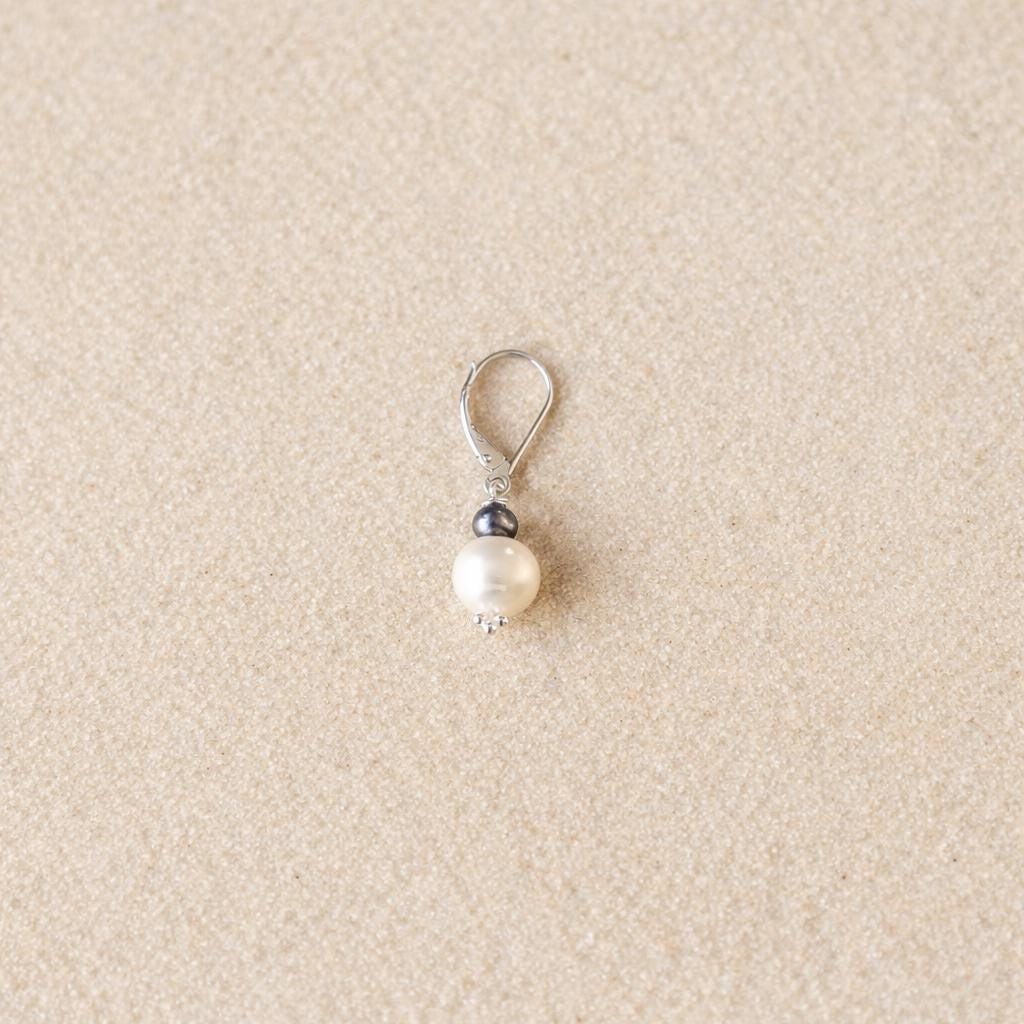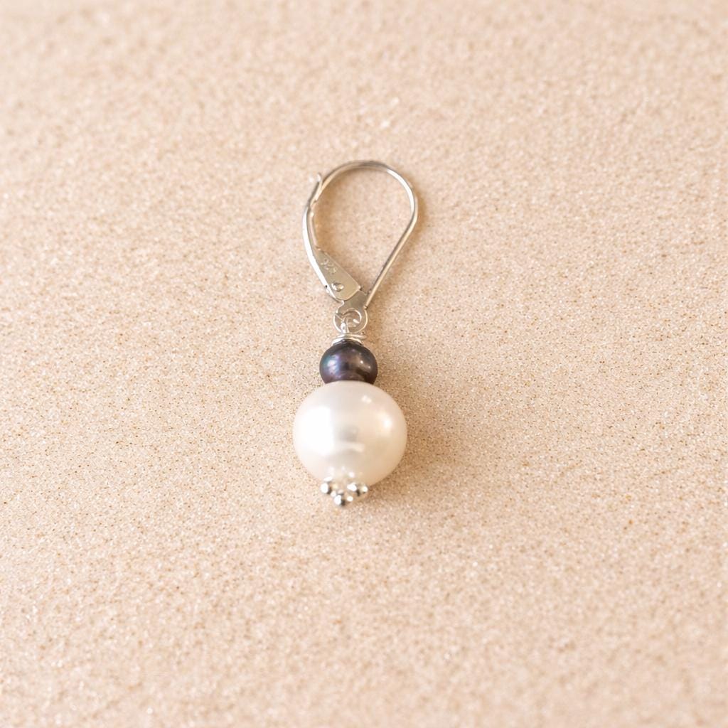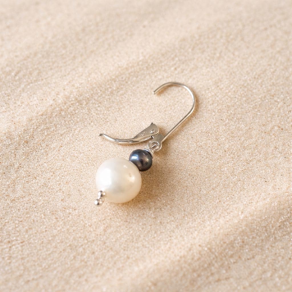 Celestial Elegance with this "LUNE et NUIT" Stud Earring. Crafted in sterling silver, this unique piece combines a natural white freshwater pearl and a small black pearl, symbolizing the meeting of the moon's light and the depth of the night.