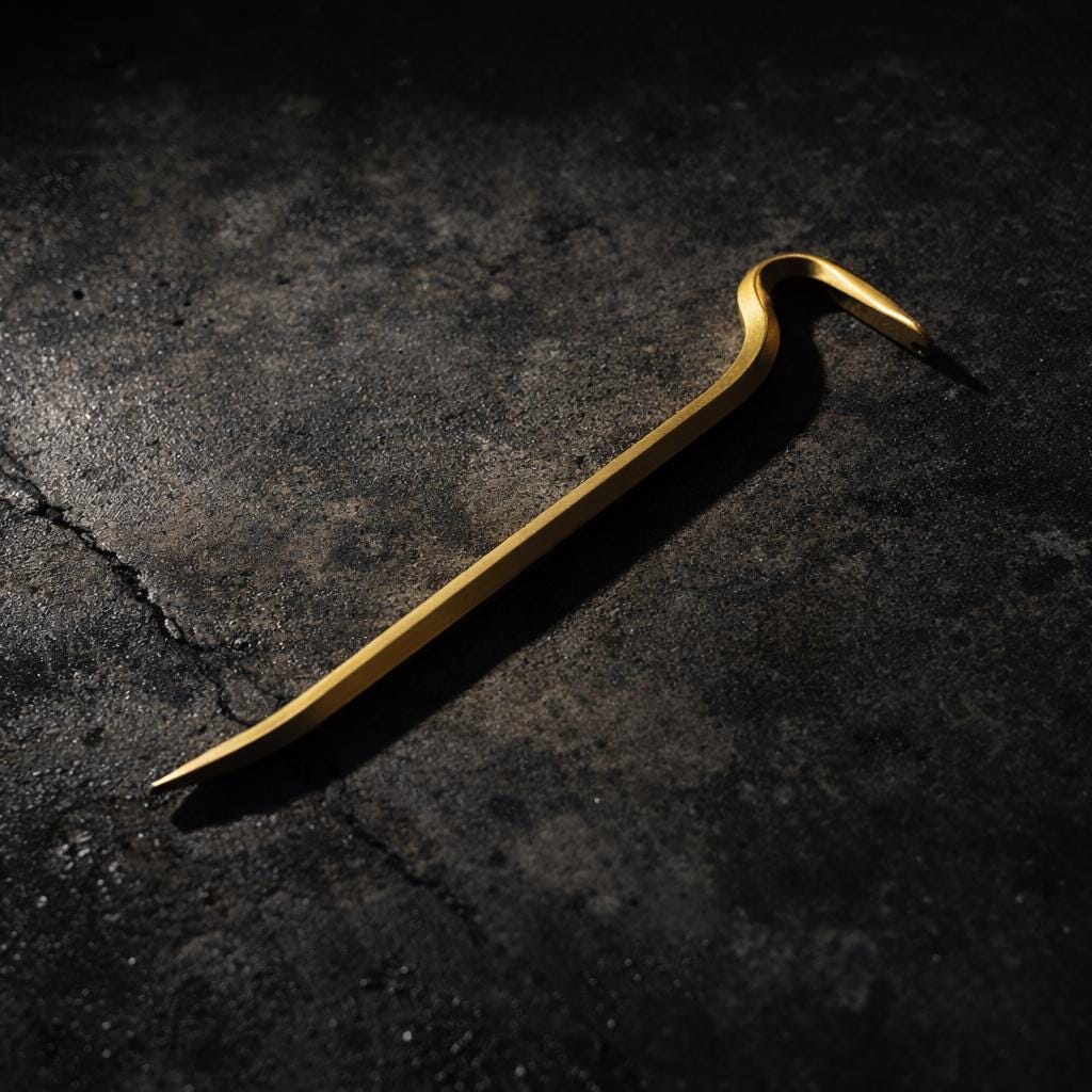 Precision hand forged from beautiful brass, each piece is unique and features an elegant crowbar shape.