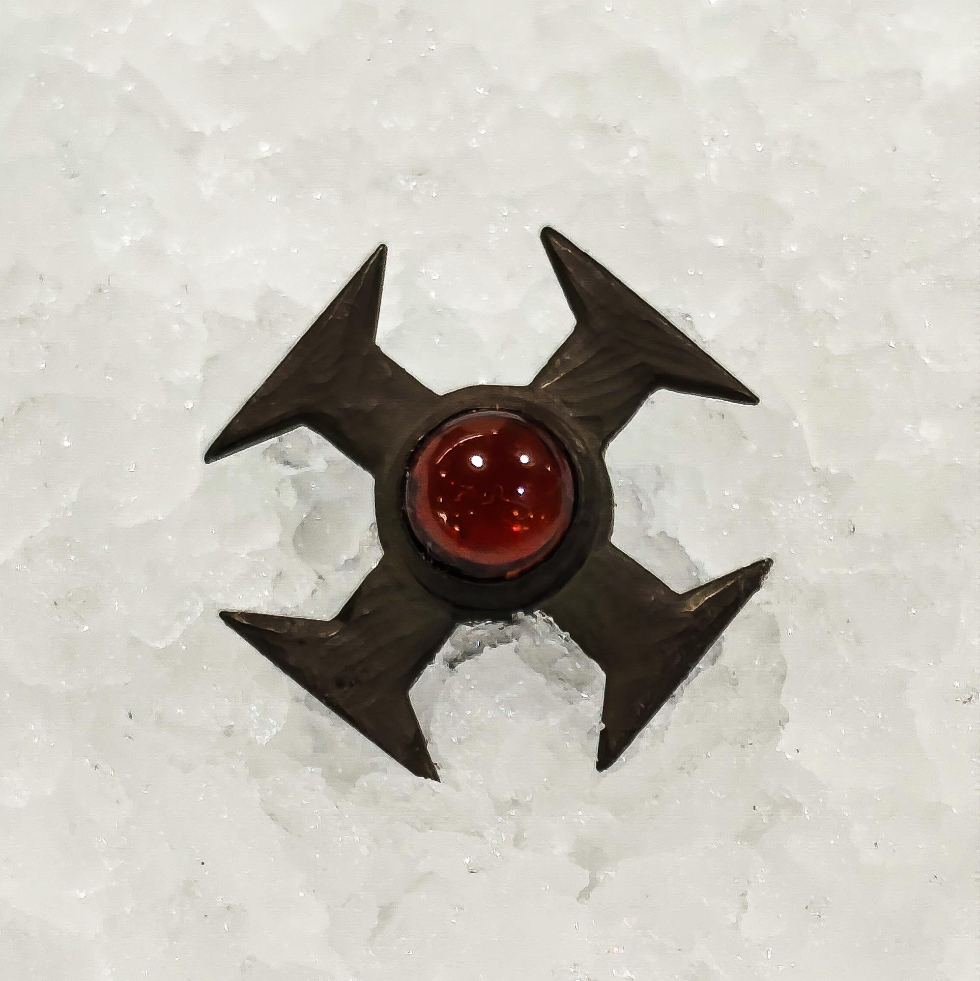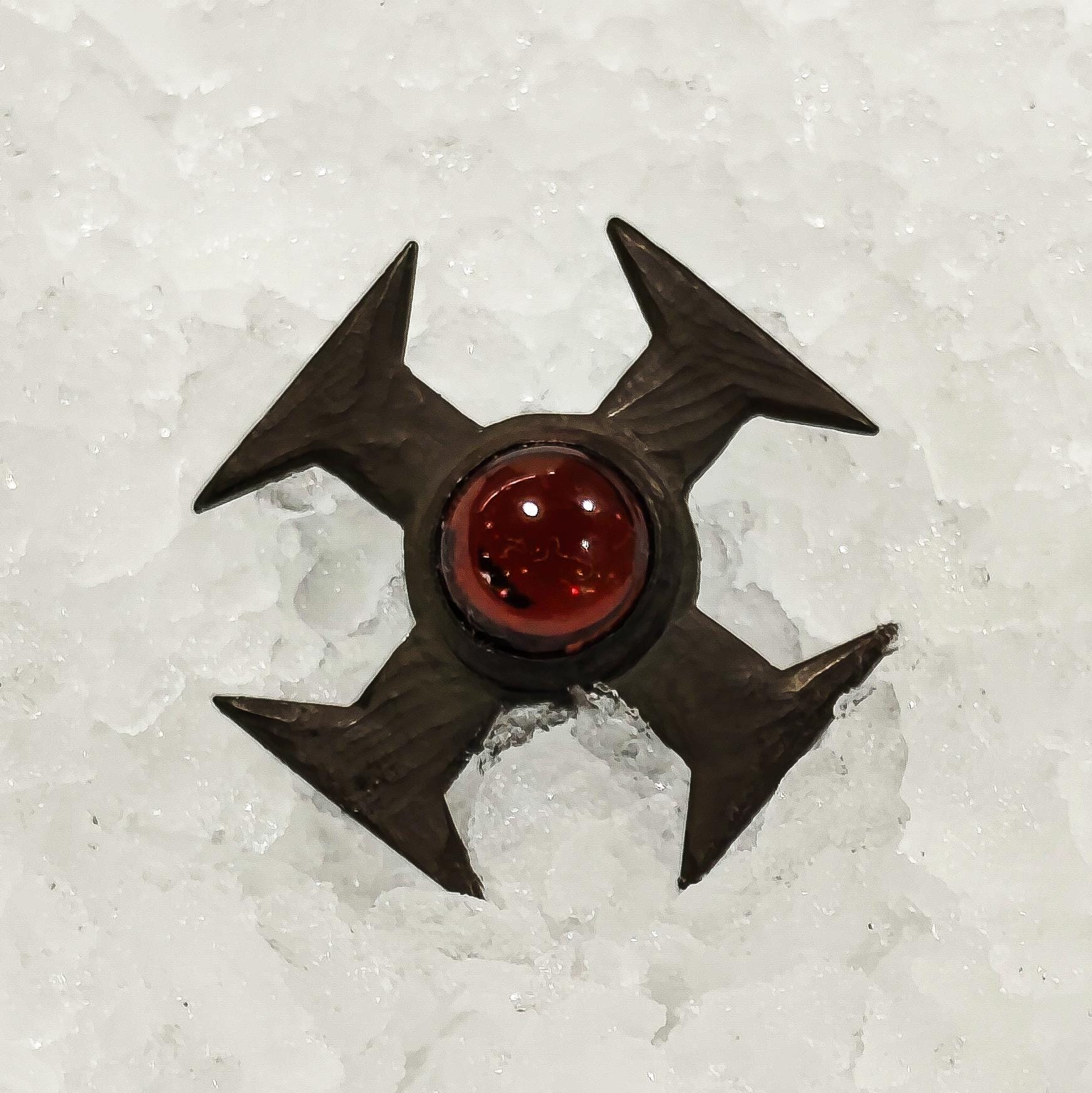 Stone: 12 mm cabochon (~8.5 ct) — Red Garnet or Black Onyx