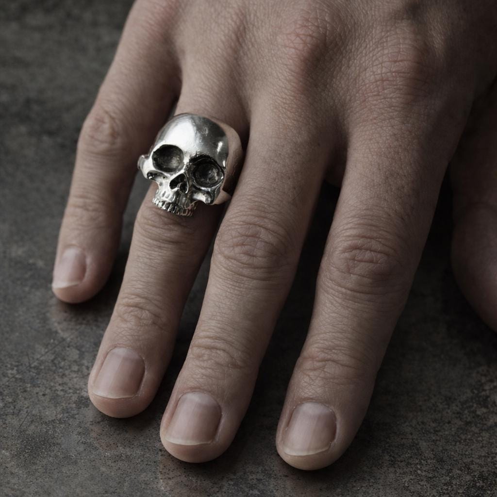 Embrace your dark side with SKULL, a sterling silver 925 ring depicting a skull. This iconic piece embodies the concept of "Memento Mori" — remember that you will die. Unlike Carpe Diem, which encourages enjoying life, "Memento Mori" is a down-to-earth reminder of our common mortality.
