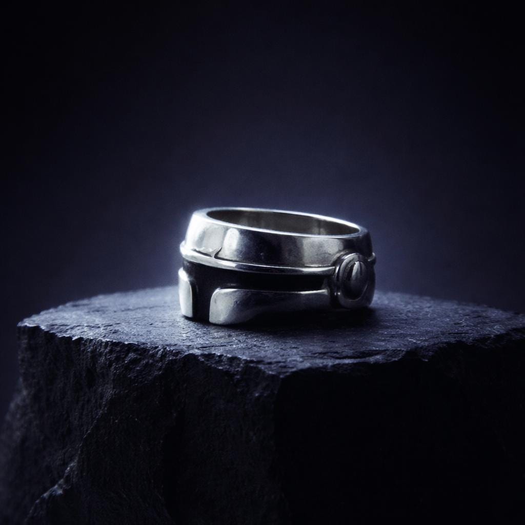 Although I cannot offer you this jewel in Beskar, the legendary metal of the Star Wars universe, it remains an unparalleled symbol of power and prestige.