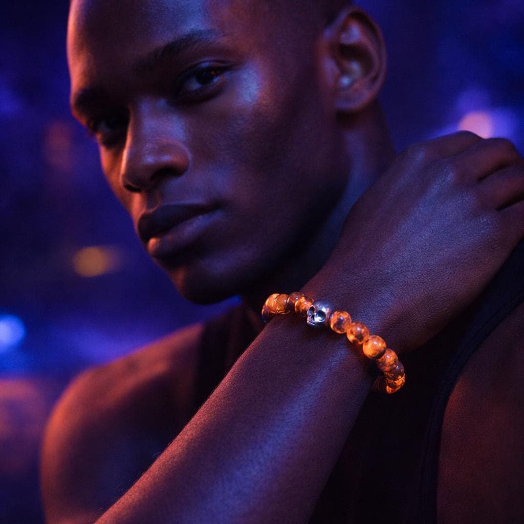 Handcrafted 925 sterling silver skulls symbolize transformation and awareness of life's fleeting nature. Their presence adds a bold, mystical touch to the bracelet, ideal for those who dare to live fully and embrace change.