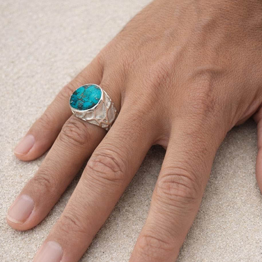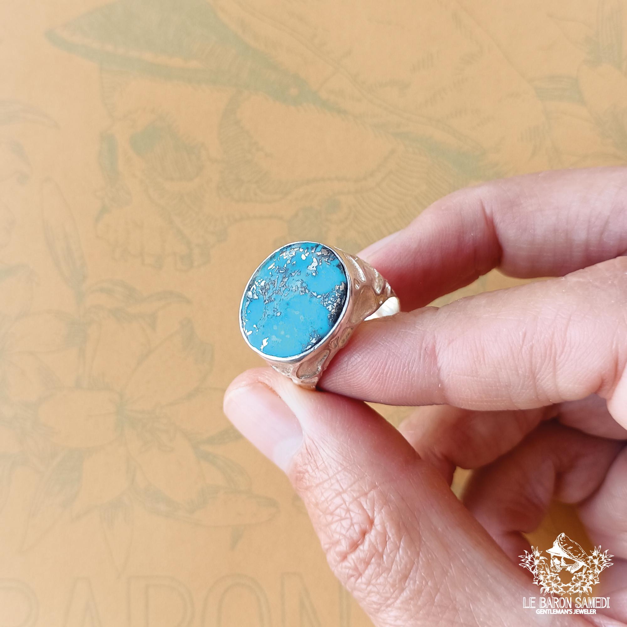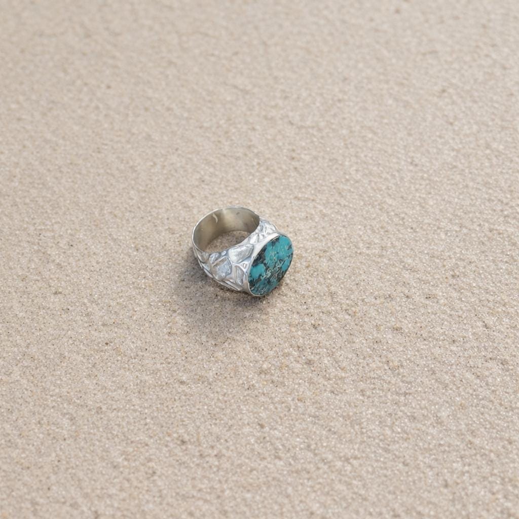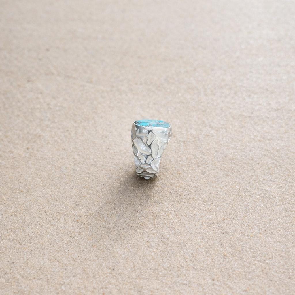 Dive into elegance and beauty with Oasis Turquoise, a sterling silver 925 signet ring topped with a stunning natural turquoise. Each piece is one-of-a-kind.
