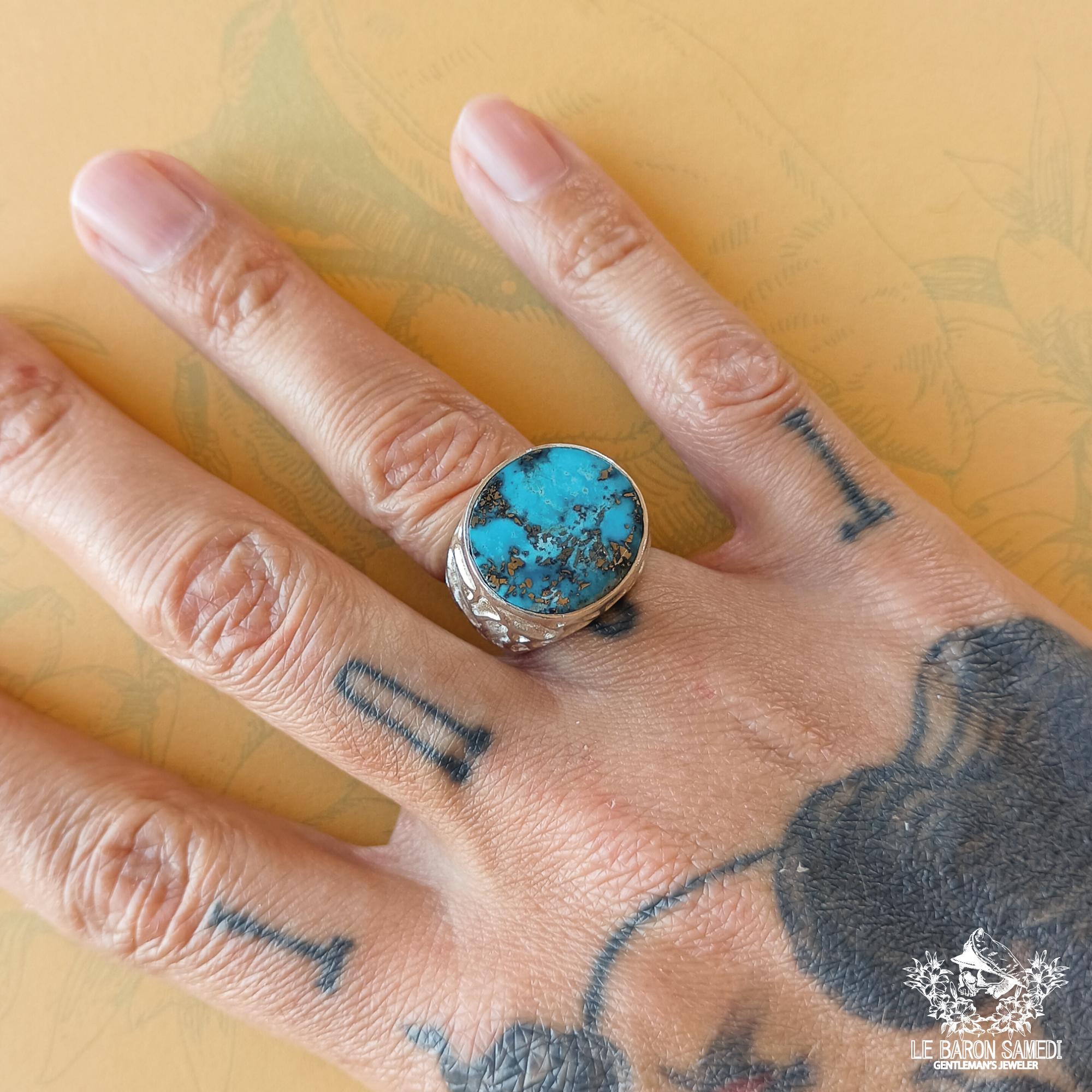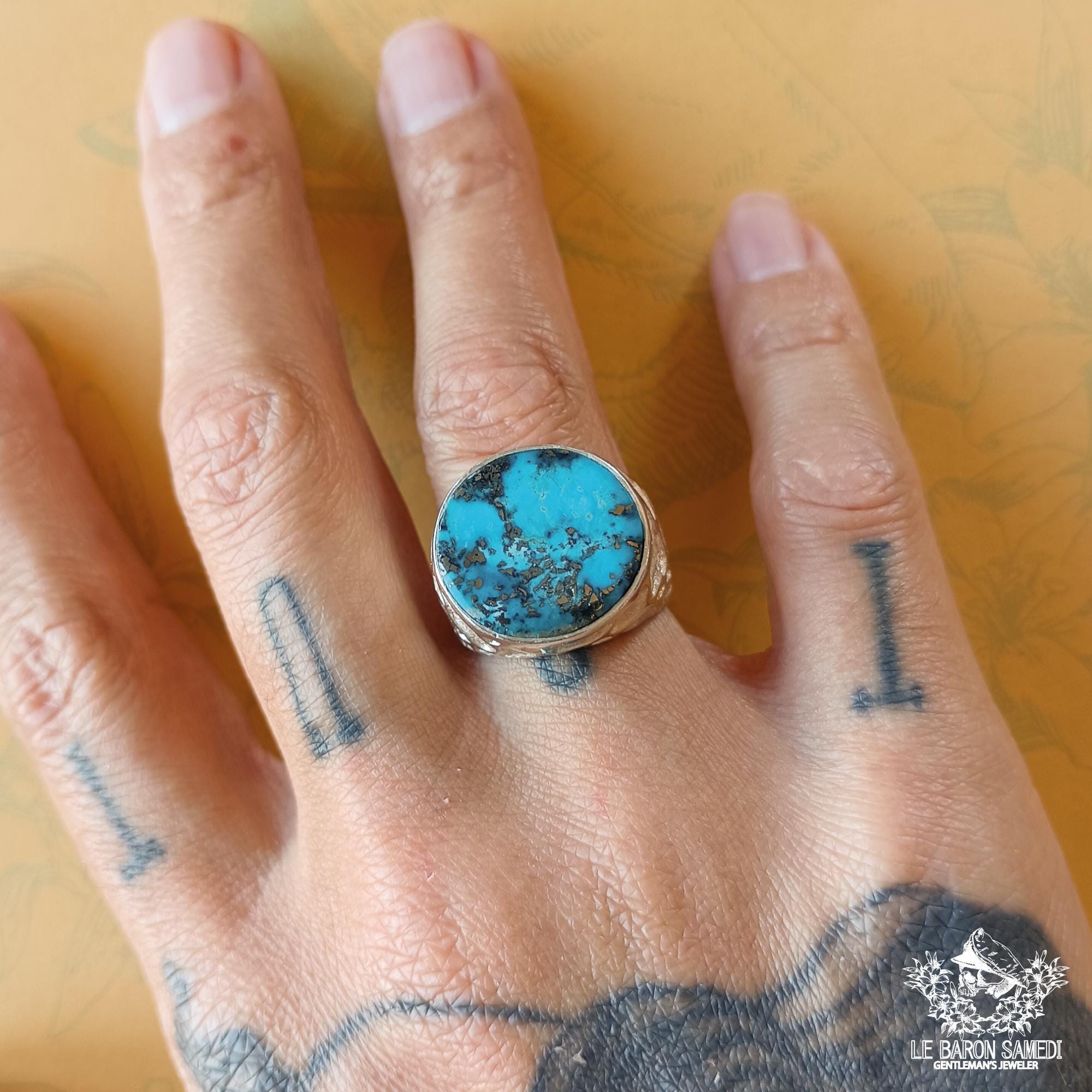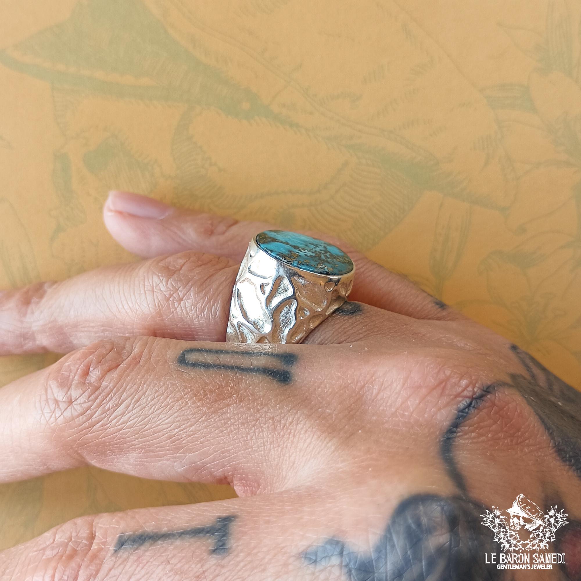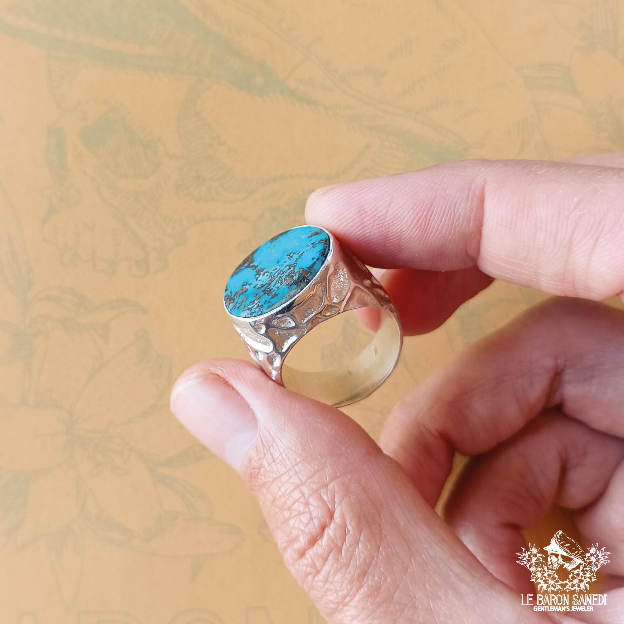 Dive into elegance and beauty with Oasis Turquoise, a sterling silver 925 signet ring topped with a stunning natural turquoise. Each piece is one-of-a-kind.