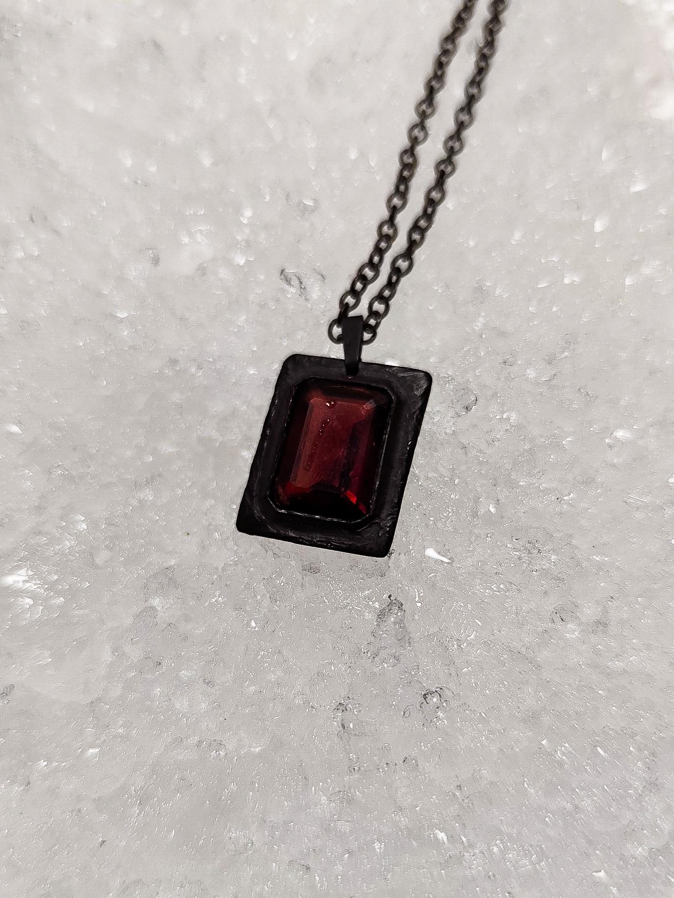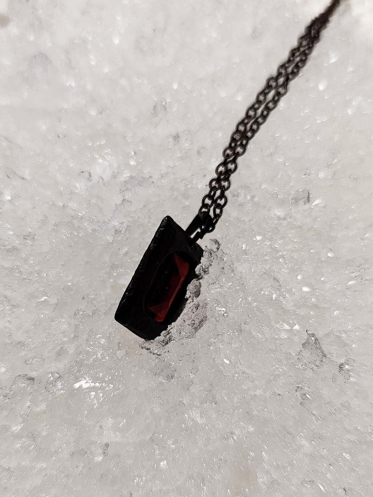 The red garnet evokes the warmth of an ember beneath the snow; the black onyx, the silent strength of the night.
