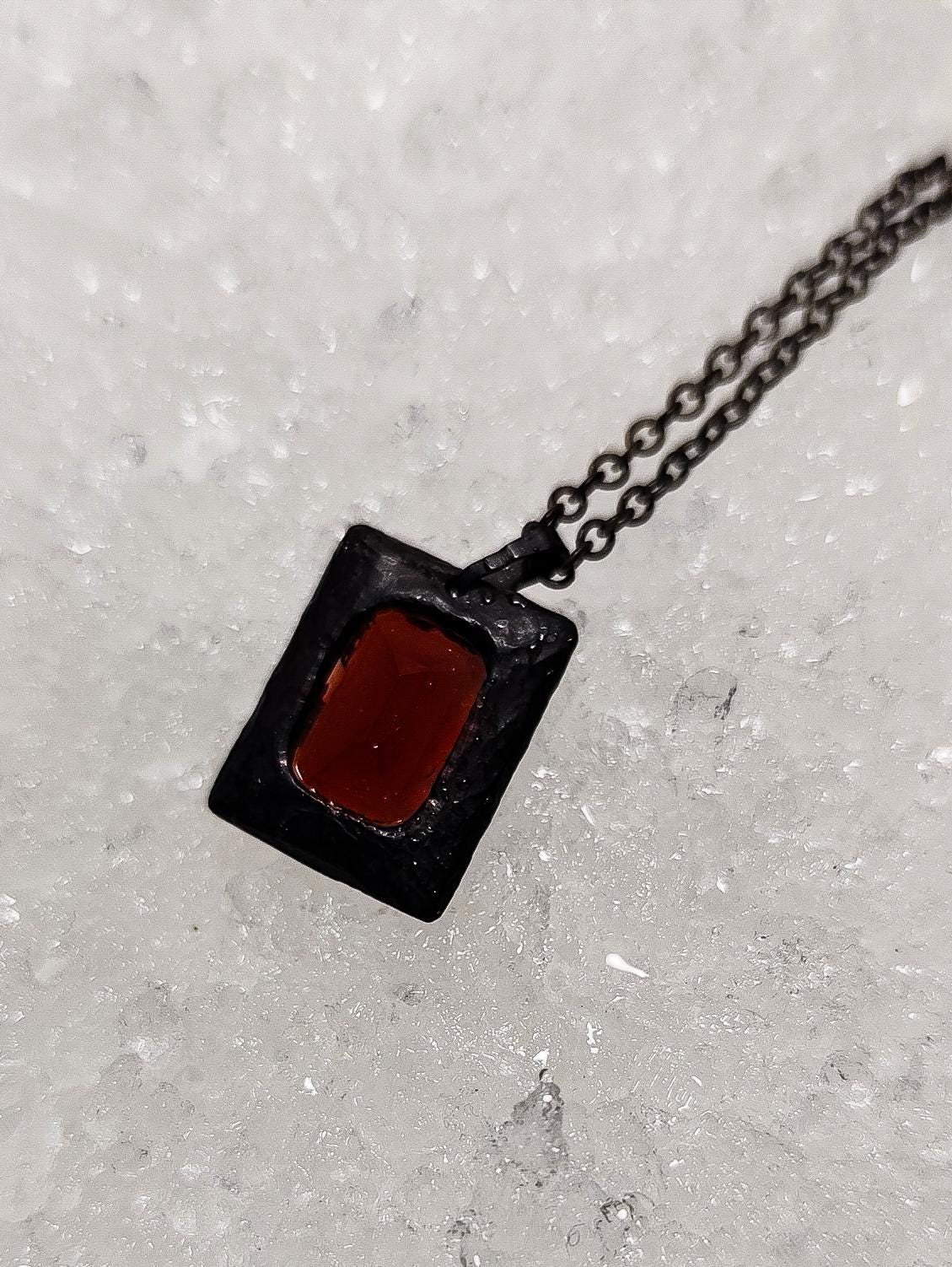 This rectangular blackened .925 silver pendant is inspired by that idea: